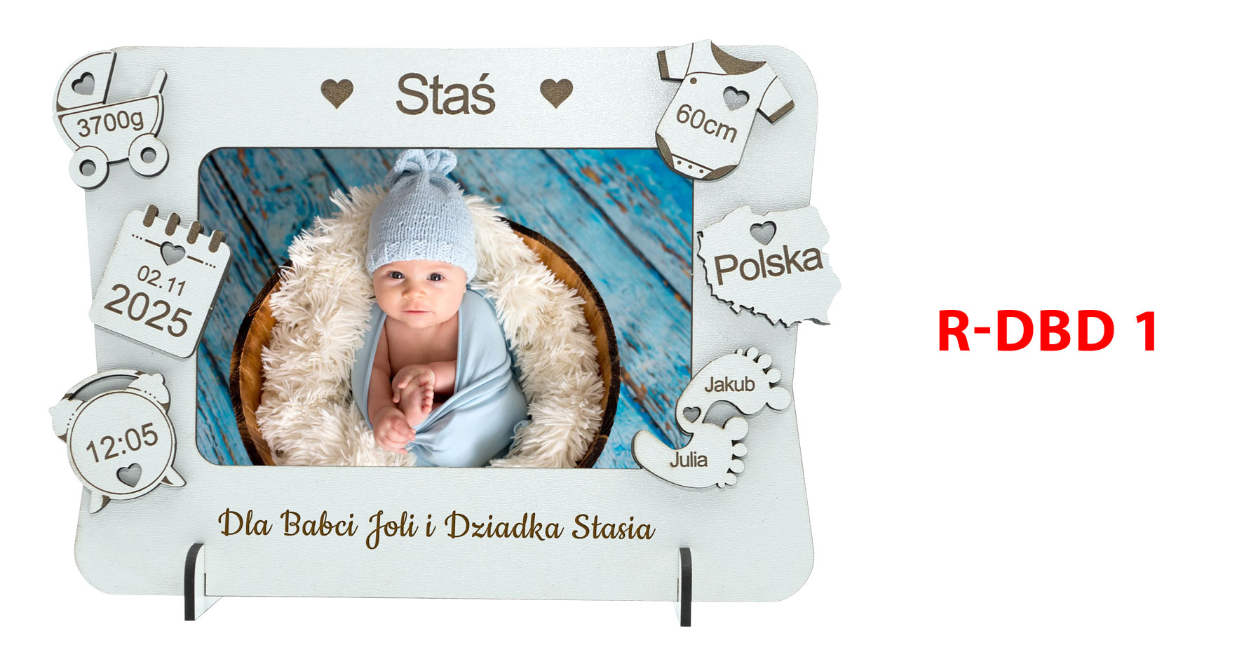 Szukasz wyjątkowego i wzruszającego prezentu dla Babci i Dziadka? Nasza personalizowana ramka metryczka ze zdjęciem wnuka lub wnuczki to idealny pomysł na oryginalny upominek, który będzie piękną pamiątką na lata. Ramka została wykonana z trwałego materiału i ozdobiona uroczymi elementami takimi jak data urodzenia, imię, godzina narodzin, waga, wzrost oraz miejsce urodzenia.