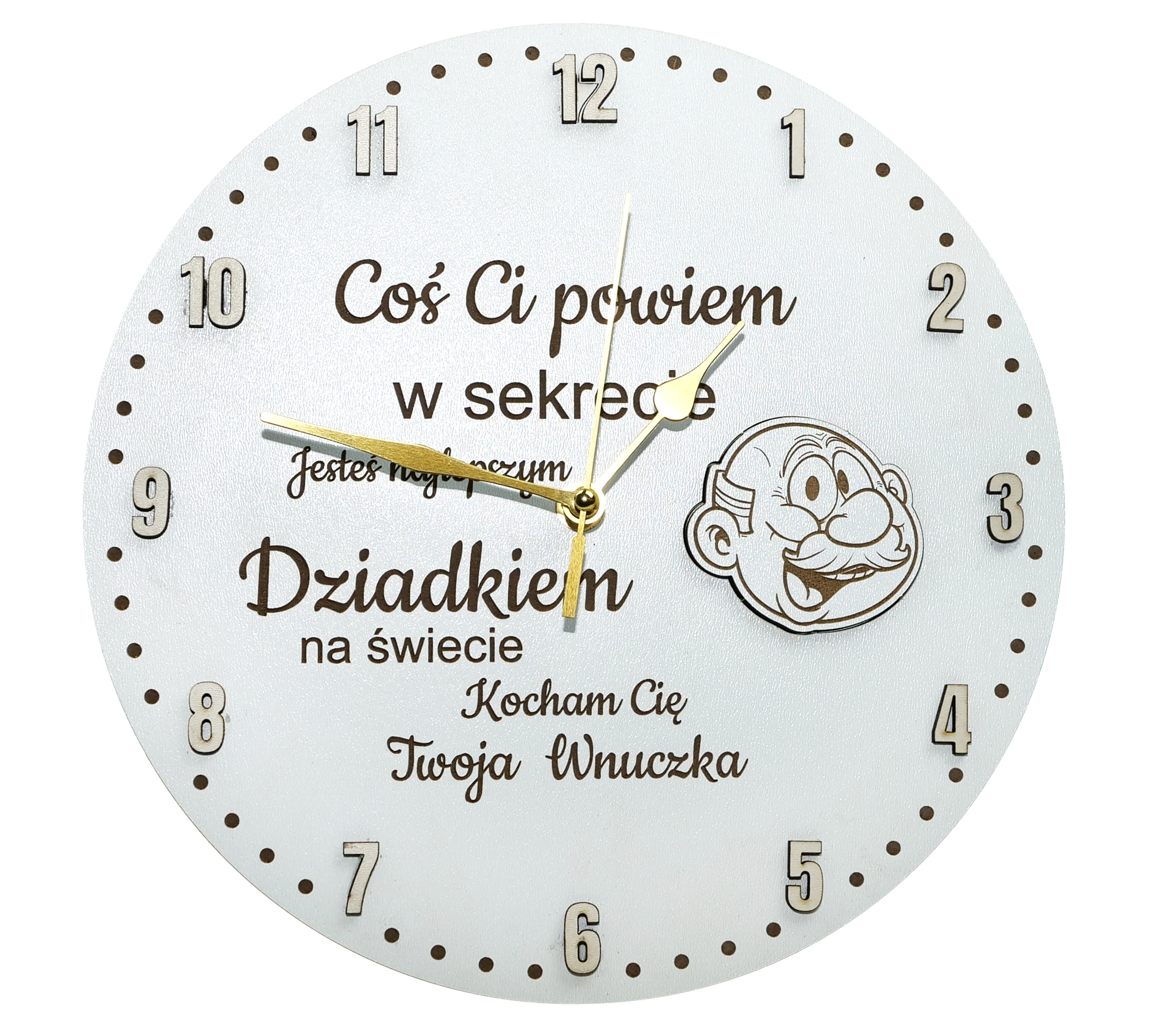 Wyjątkowy zegar ścienny z dedykacją to idealny prezent na Dzień Babci i Dziadka – 21 i 22 stycznia. To niepowtarzalna dekoracja, która wzruszy każdego dziadka i każdą babcię. Na tarczy zegara znajduje się piękny napis: